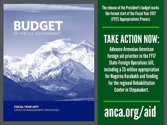 WASHINGTON—The Armenian National Committee of America continued calls for grassroots action to increase aid to Nagorno-Karabakh and foster stronger U.S.-Armenia trade relations, as President Obama rolled out his Fiscal Year 2017 (FY2017) budget request earlier today.