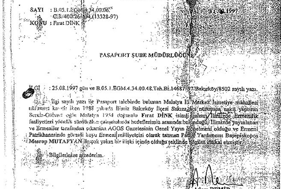 The court demanded this document within the framework of investigating the complicity of former officials in Dink’s case.
