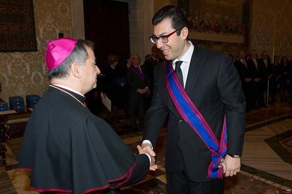 At a solemn ceremony in the Apostolic Palace in Vatican, Giovanni Angelo Becciu, Substitute for General Affairs to the Secretary of State of the Holy See, handed the Order to Ambassador Minasyan.