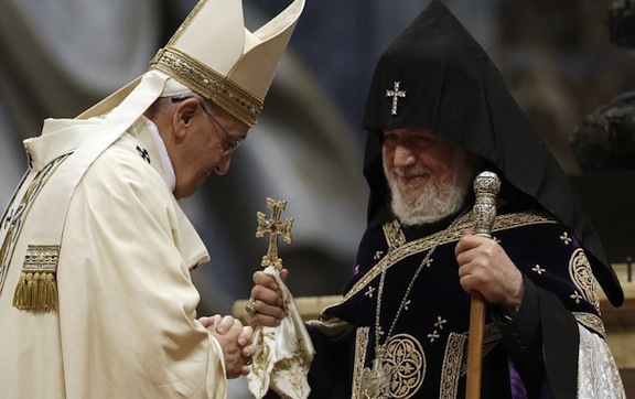 Pope Francis (left) with Catholicos Karekin II in the Vatican in April 2015