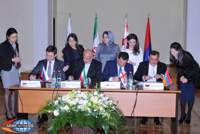Energy Ministers of Armenia, Iran, Georgia, and Russia sign agreement for North-South Energy Corridor.