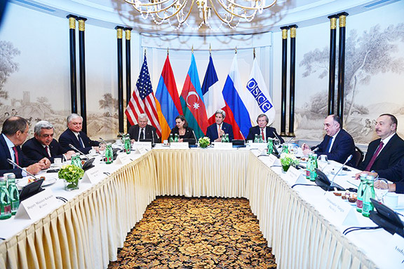 VIENNA—President Serzh Sarkisian on Monday met with his Azerbaijani counterpart Ilham Aliyev at talks mediated by the OSCE Minsk Group co-chairing countries’ foreign ministers. The sides agreed on several provisions that seek to deflate the tension, which erupted in early April when Azerbaijan staged a savage attack on all borders of Karabakh and agreed to a meeting in June.