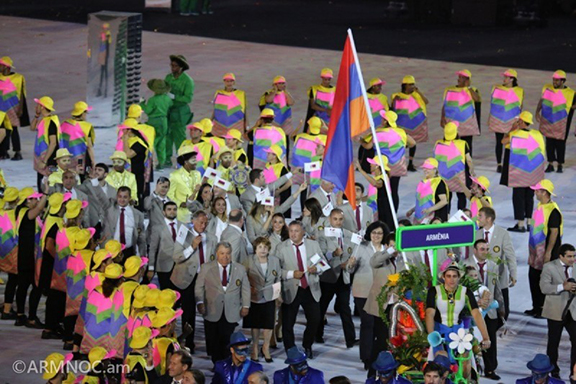 RIO DE JANEIRO (ARMNOC)—The Republic of Armenia participated in the opening ceremony of the 31st Summer Olympics in Rio de Janeiro, Brazil with 33 athletes representing the country. The 31st Summer Olympic cauldron was lit in Rio de Janeiro’s legendary Maracana stadium marking the start of the most expected sporting event of the last four years.