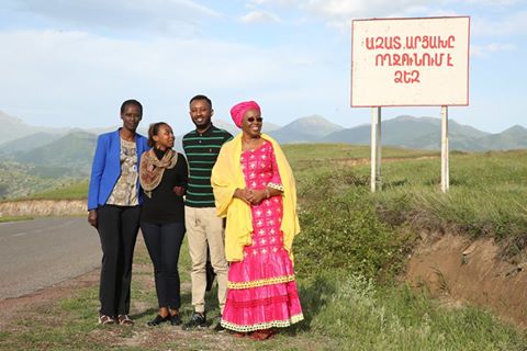 Marguerite Barankiste (far left) and delegation visit Artsakh Republic (Photo: Aurora Prize)