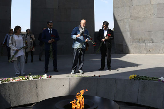 AGMI Deputy Director Lusine Abrahamyan briefed the guest on the history of the Armenian Genocide, after which Malkovich signed the museum’s guestbook. He later laid flowers at the eternal fire and paid tribute to the memory of Armenian Genocide victims with a moment of silence.