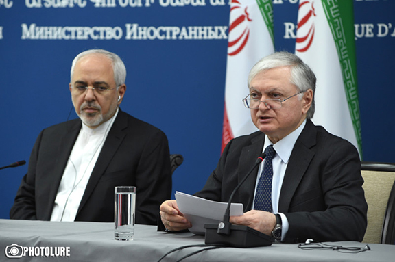 Iran’s Foreign Minister Mohammad Javad Zarif (l) with Armenia’s Foreign Minister Edward Nalbandian in Yerevan on Tuesday