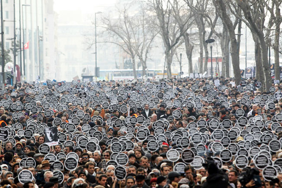 According to news accounts, the demonstrators carried signs that read, “We are all Hrant Dink, we are all Armenian” and chanted “Murderer state will account for this” and “Shoulder to shoulder against fascism,” as they made their way from the city’s Taksim square to the editorial offices of Agos newspaper.