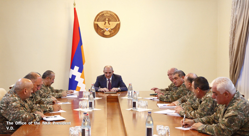 ՍՏԵՓԱՆԱԿԵՐՏ.– Արցախի Հանրապետութեան նախագահ Բակօ Սահակեան 4 Օգոստոսին գլխաւորած է աշխատանքային խորհրդակցութիւն մը՝ պաշտպանութեան բանակի բարձրագոյն հրամանատարական կազմին հետ, որուն ընթացքին ներկայացուած են զեկոյցներ ղարաբաղեան-ատրպէյճանական սահմանին վրայ վերջերս տեղի ունեցած միջադէպերու, Ատրպէյճանի կողմէ զինադադարի դրութեան կոպիտ խախտումներուն, Արցախի Հանրապետութեան տարածք ներթափանցման-հետախուզական խումբերու գործողութիւններուն առնչութեամբ: