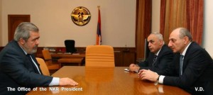 ԵՐԵՒԱՆ, <<Ապառաժ>> - Լեռնային Ղարաբաղի նախագահ Բակօ Սահակեան 27 Փետրուարին ընդունած է ՀՅԴ Բիւրոյի ներկայացուցիչ Հրանտ Մարգարեանը: