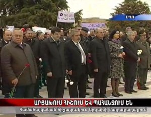Եռագոյնի առաջնորդութեամբ Լեռնային Ղարաբաղի Հանրապետութեան ղեկավարներն ու միւս արցախցիները ուղղուեցան դէպի Ստեփանակերտի յուշահամալիր: Պահանջը յստակ էր՝ Հայոց Ցեղասպանութեան ճանաչում ու դատապարտում: