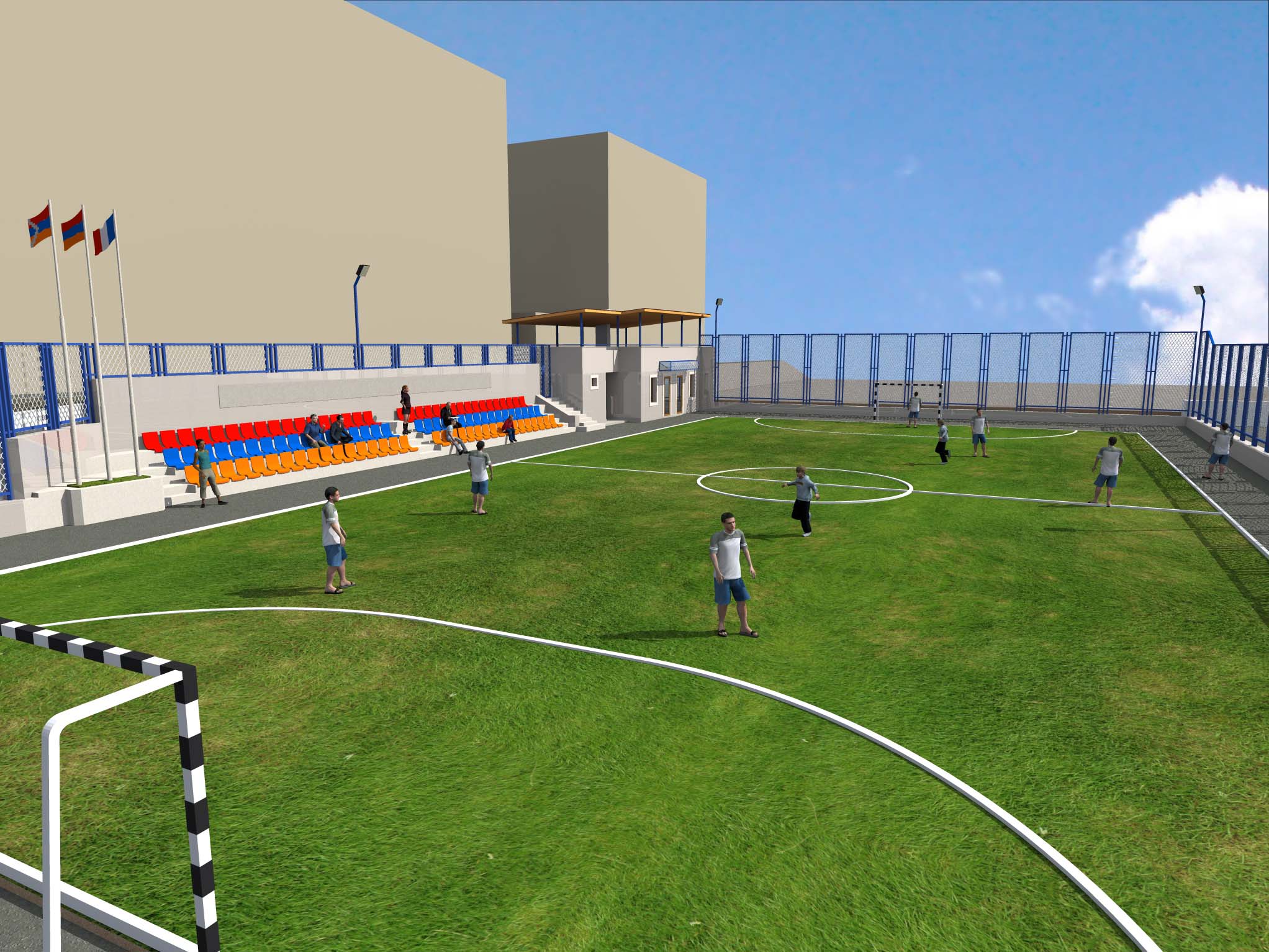 Ծրագիրը կ՛իրականացուի ֆրանսացի գործարարներու նիւթական աջակցութեամբ: Մայրաքաղաքին կեդրոնը կառուցուող մարզահրապարակը պիտի ունենայ արհեստական խոտածածկով 800 քառմ. դաշտ, 102 նստատեղ հանդիսատեսի համար, հանդերձարաններ: Մարզահրապարակին լուսաւորումն ու կահաւորումը պիտի իրականացուին արդի պահանջներուն համապատասխան: Մարզահրապարակը, ուր կրնան իրականացուիլ նաեւ ֆութպոլի փորձեր, պիտի սպասարկէ շրջակայ դպրոցներու աւելի քան 3000 աշակերտի: