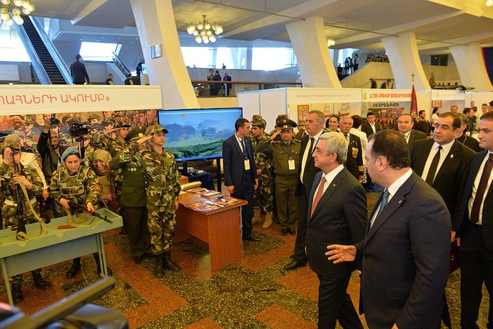 Հանրապետութեան նախագահ Սերժ Սարգսեան` պաշտպանութեան, կրթութեան եւ գիտութեան, սփիւռքի, մարմնակրթութեան եւ երիտասարդութեան հարցերու նախարարներուն եւ այլ անձնաւորութիւններու ընկերակցութեամբ այցելած է համաժողովի ծիրին մէջ կայացող ցուցահանդէսի տաղաւարներ, զինուորական դաշտային խոհանոց, դիտած է առանձին հարթակներու եւ տաղաւարներու մէջ ներկայացուած սպառազինութեան եւ ռազմական համակարգերու նմուշները, Հայաստանի ռազմարդիւնաբերական համալիրի արտադրատեսակները, ծանօթացած կրթական մարզի կարգ մը յառաջատար հաստատութիւններուն ներկայացուցած կրթական ծրագիրներուն, արձանագրած յաջողութիւններուն: