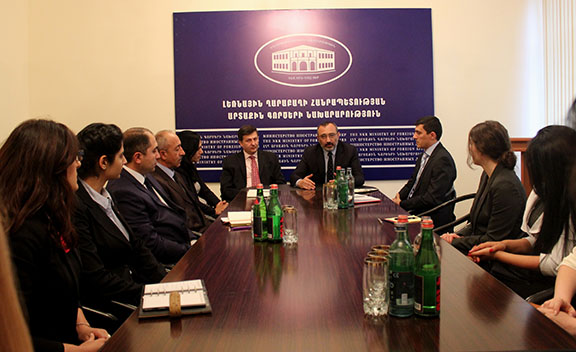 STEPANAKERT—Minister of Foreign Affairs of the Nagorno-Karabakh Republic, Karen Mirzoyan, met with students of Armenia`s Diplomatic School today, led by the school’s director, Ambassador Vahe Gabrielyan, who had paid a customary visit to Stepanakert.
