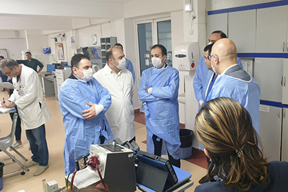 Armenia’s Health Minister Arsen Torosyan (center) confers with healthcare professionals