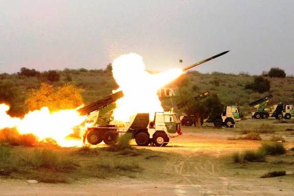 Pinaka is a multiple rocket launcher produced in India and developed by the Defense Research and Development Organization (DRDO) for the Indian Army. The system has a maximum range of 40 km for Mark-I and 60 km for Mark-I enhanced version, and can fire a salvo of 12 rockets in 44 seconds. As of 2019, an upgraded guided missile version of the system has been test-fired, with a range of over 90 km, the India-based WION news agency reported.
