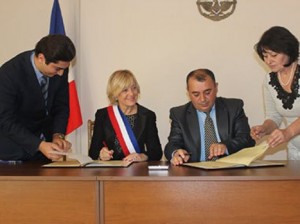 ԵՐԵՒԱՆ, «Նիուզ».– Շուշիի քաղաքապետ Արծուիկ Սարգսեան եւ Արցախ ժամանած Ֆրանսայի Պուրկ Լէ Վալանսի քաղաքապետ Մարլէն Մուրիէ 5 Հոկտեմբերին ստորագրած են Բարեկամութեան հռչակագիր՝ երկու քաղաքներուն միջեւ: