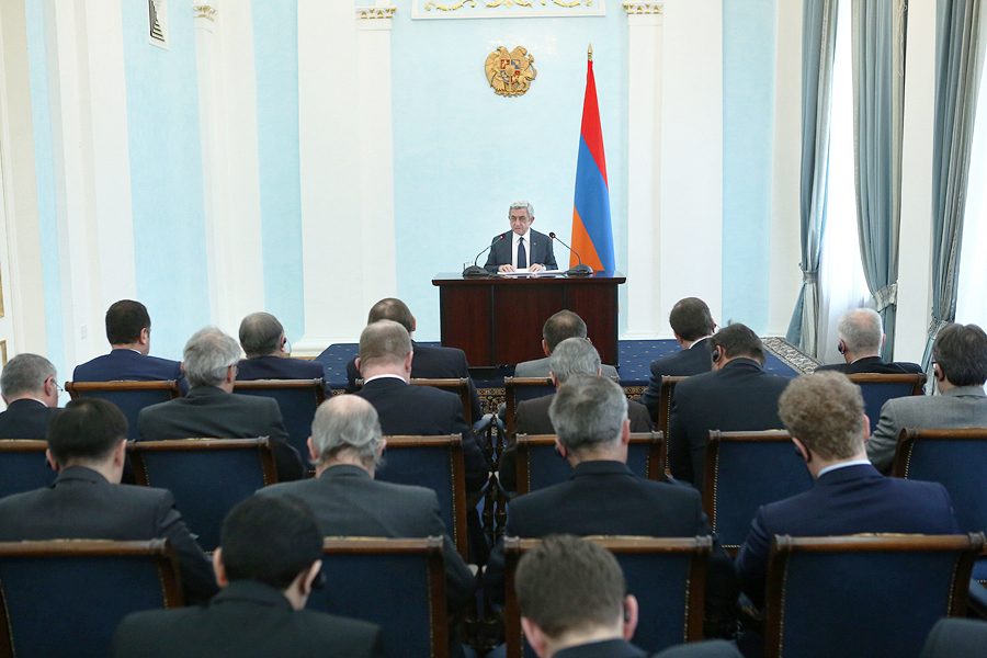 <<Նման մասշտաբի գործողութիւններ չի գրանցուել 1994 թուականի զինադադարի հաստատումից ի վեր: Ադրբեջանը շարունակում է թիրախաւորել խաղաղ բնակչութեանը՝ օգտագործելով հրթիռահրետանային կայանքներ եւ հրանօթներ: Այսպէս կոչուած <<միակողմանի զինադադար>>ի յայտարարումից յետոյ Լեռնային Ղարաբաղի բնակավայրերի ուղղութեամբ աշխատել է Ադրբեջանի հրետանին: Հայաստանի Հանրապետութիւնը՝ որպէս 1994 թուականի Զինադադարի համաձայնագրի կողմ, շարունակելու է լիարժէքօրէն կատարել Լեռնային Ղարաբաղի բնակչութեան անվտանգութեան ապահովման իր պարտաւորութիւնները: Աւելի՛ն, ես հրահանգել եմ արտաքին գործերի նախարարութեանը՝ աշխատել Լեռնային Ղարաբաղի հետ ռազմական փոխօգնութեան պայմանագիր կնքելու ուղղութեամբ: Եւ այստեղ պէտք է նշեմ՝ մէկ անգամ չէ, որ ես յայտարարել եմ, որ եթէ, իրօք, ռազմական գործողութիւնները շարունակուեն եւ ստանան լայնածաւալ մասշտաբ, Հայաստանի Հանրապետութիւնը ճանաչելու է Լեռնային Ղարաբաղի անկախութիւնը>>, հաստատած է նախագահ Սարգսեան։