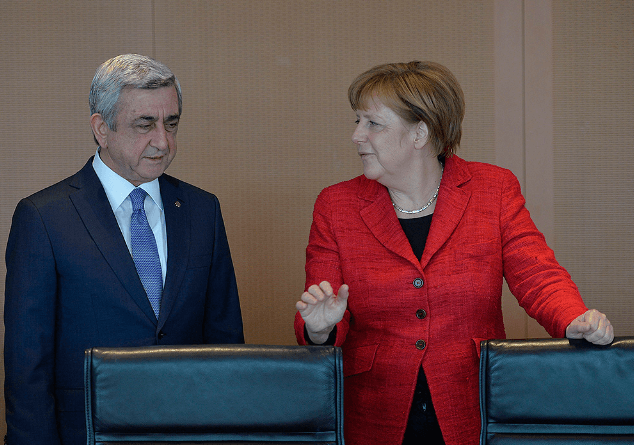 Նախագահ Սերժ Սարգսյանը Գերմանիայի կանցլեր Անգելա Մերկելի հետ հանդիպմանը ներկայացրել է ղարաբաղյան խնդրի վերջին զարգացումները: Գերմանիայի մայրաքաղաք Բեռլինում Մերկելի հետ հանդիպումից հետո համատեղ ճեպազրույցում ՀՀ նախագահ Սերժ Սարգսյանը նշել է, որ Ադրբեջանը, անտեսելով միջազգային հանրության խաղաղությանն ուղղված ավելի քան 20 տարիների ջանքերը, Ղարաբաղ-Ադրբեջան շփման գծի ողջ երկայնքով լայածավալ ռազմական գործողություններ սկսեց: