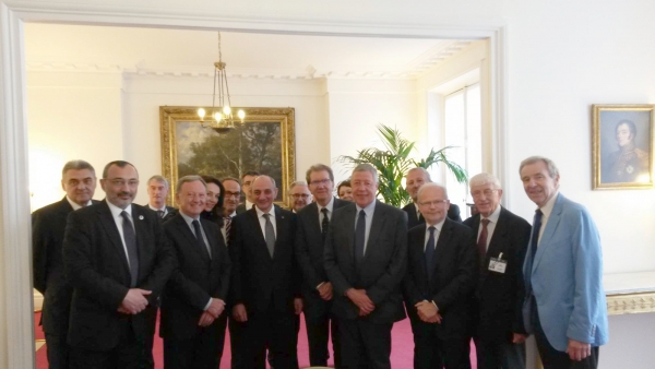 Artsakh President Bako Sahakian, accompanied by a delegation of Artsakh officials, with deputies of the French National Assembly in Paris. May 19, 2015. (Photo: official publication)