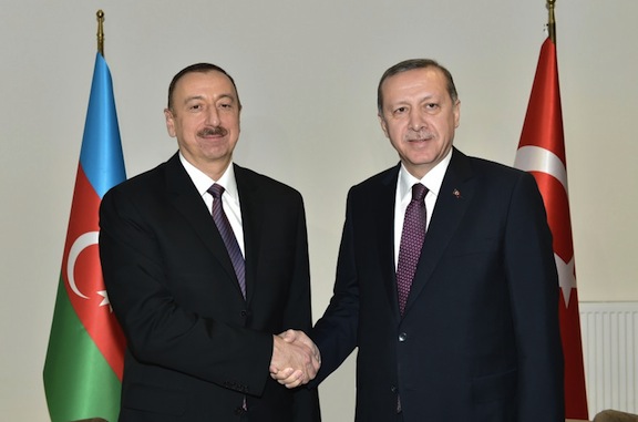 Azeri President Ilham Aliyev (left) with his Turkish counterpart Recep Tayyip Erdogan